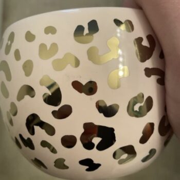 This cup is so ADORABLE! It is so fun and festive with all of its gold spots and accents! It has a low profile so it doesn't tip over easily, but it still hold more liquid than I thought it would. My daughter, who wears cat-ear headbands always wants to use this mug for her hot tea or hot chocolate, but I've usually beat her to the punch, so I'm thinking I should order another one. Would make a great gift as it comes in a nice Pinky Up box to wrap. I have washed it in my dishwasher several times on the top rack, and it has come out fine every time. I am careful when placing it upside down due to the "ears." I was most worried about the gold coming off, but so far, so good. Inside the cup, on the bottom, it says "BE WILD," so it helps me seize my day!