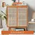 Large Capacity White Oak & Rattan Woven Shoe Cabinet