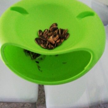 Bought for my co-worker and I to eat our sunflower seeds. Works great. Keeps the seeds hidden from neighbors and is easy to clean