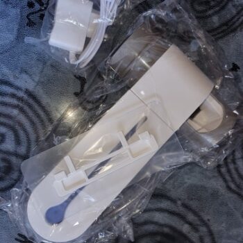 Remove the adhesive mounting pad from the toothbrush sanitizer.