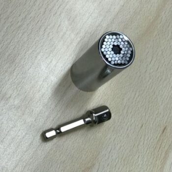 This tool can be attached to my screwdriver with multiple bits. It makes skate truck lock nut adjustments easy, and can also tighten the wheels. It is light enough to haul around and attached to my screwdriver I can do just the right torque. I was shopping for a socket wrench set, but this obviates that purchase for me. It sure does grab!